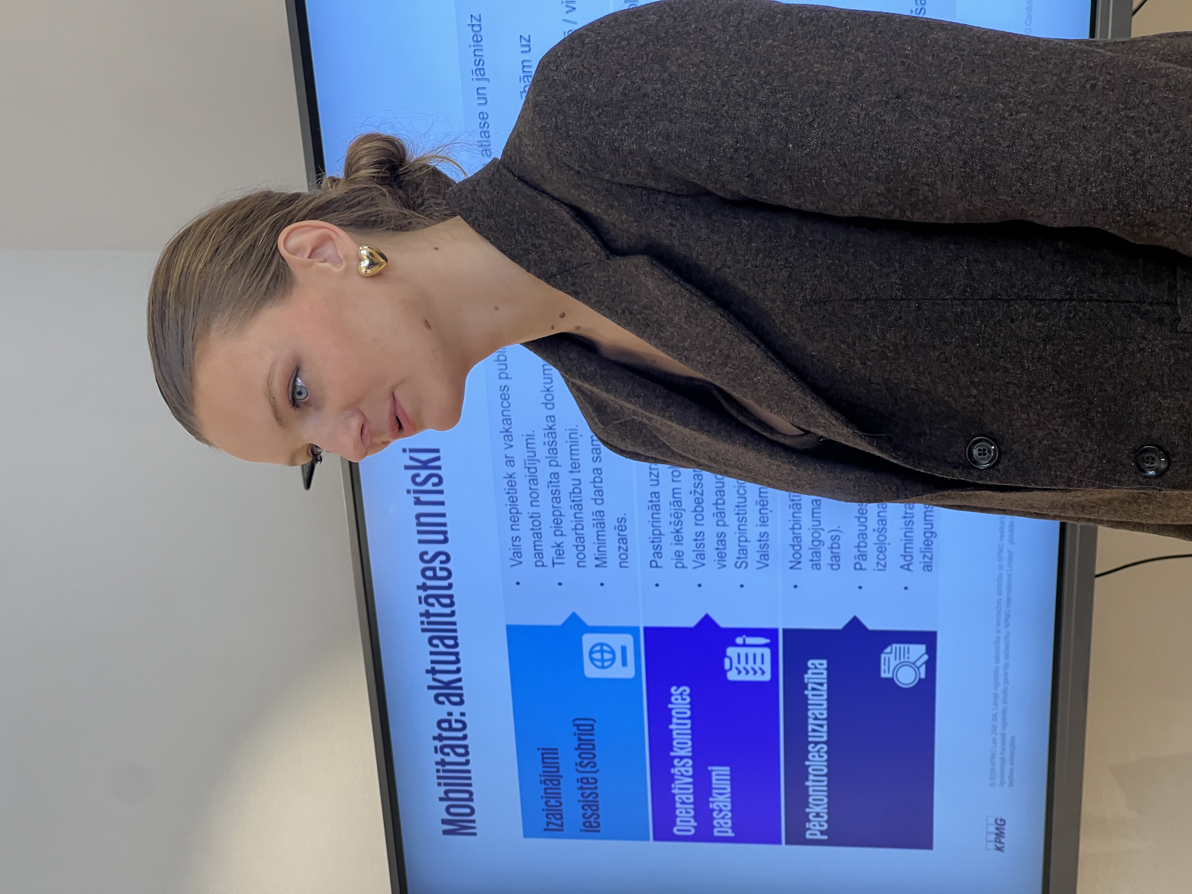 Par juridiskajiem izaicinājumiem, darbinieku mobilitāti, motivāciju un regulējuma jautājumiem informēja Līna Gavare, zvērināta advokāte un “KPMG Law ZAB” SIA Darba un imigrācijas tiesību prakses grupas vadītāja, un Toms Bordāns, zvērināts advokāts un “KPMG Law ZAB” SIA Strīdu risināšanas prakses grupas vadītājs.